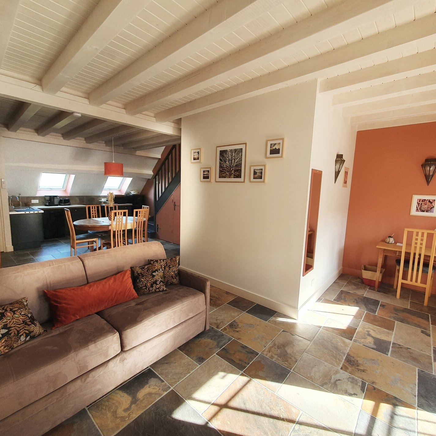 Il est possible de privatiser LARBRENVILLE et ses 4 appartements pour accueillir jusqu’à 14 personnes. Au rez-de-chaussée, une grande salle à manger/cuisine équipée permet de se réunir pour partager les repas.